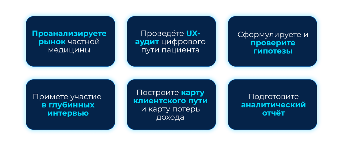 Ценность в том, что мы работали с реальным рынком. Не абстрактные задания, а конкретные клиники, реальные гипотезы и расчёт финансового эффекта. Это другой уровень глубины по сравнению с обычными курсами.